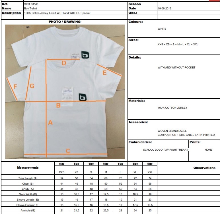 De kwaliteiten en prijzen van deze artikelen zijn goedgekeurd door de school. De meeste artikelen zijn hoofdzakelijk 100% katoen. Katoen heeft het kenmerk te krimpen. De krimp ligt zowel in lengte als breedte binnen de normen (4%) en daarop werd uiteraard getest. Bestel daarom bij voorkeur niet te nipt, maar eerder wat ruim.