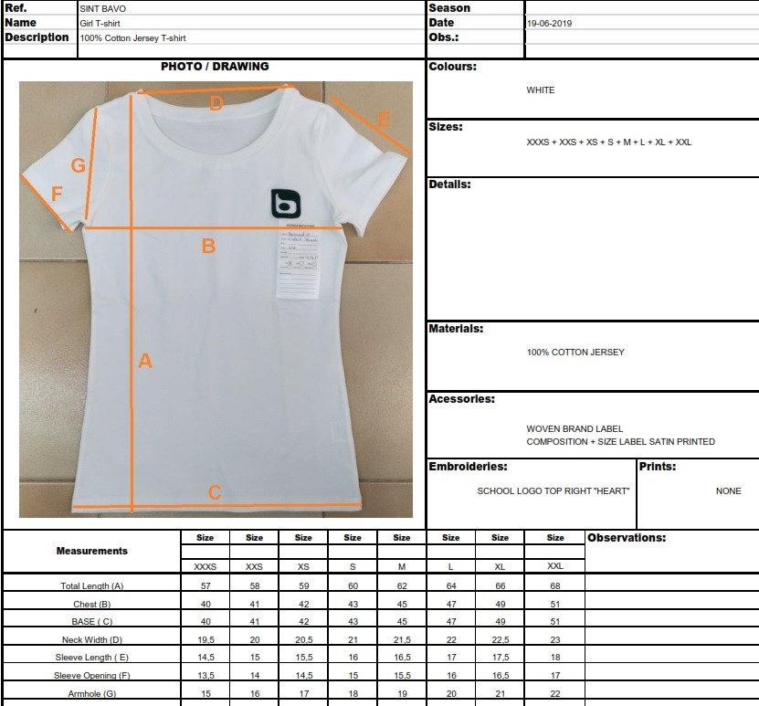 De kwaliteiten en prijzen van deze artikelen zijn goedgekeurd door de school. De meeste artikelen zijn hoofdzakelijk 100% katoen. Katoen heeft het kenmerk te krimpen. De krimp ligt zowel in lengte als breedte binnen de normen (4%) en daarop werd uiteraard getest. Bestel daarom bij voorkeur niet te nipt, maar eerder wat ruim.